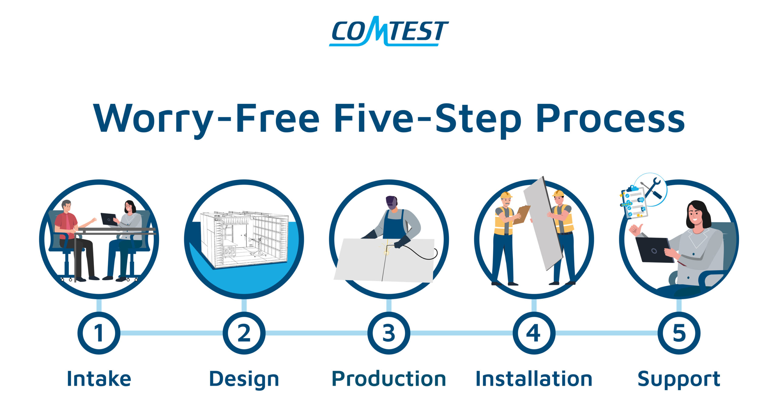 Comtest offers five years warranty on the shielding of your test room, permitted yearly maintenance after the second year. Signing up for our annual plan will ensure optimal test results, industry-standard compliance, and the longevity of your chamber.